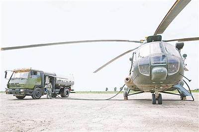 陆航直升机转场途中在空军某机场进行油料补充。 管新全 摄
