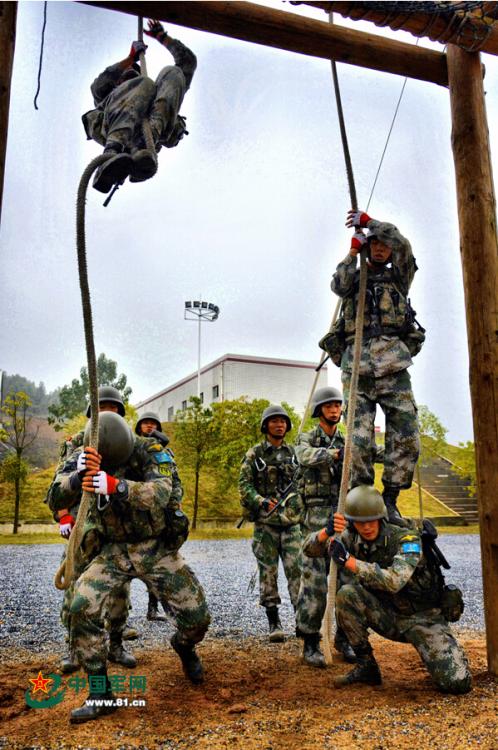 军校银河特战队倒挂攀绳 艰难爬过滚木(图)