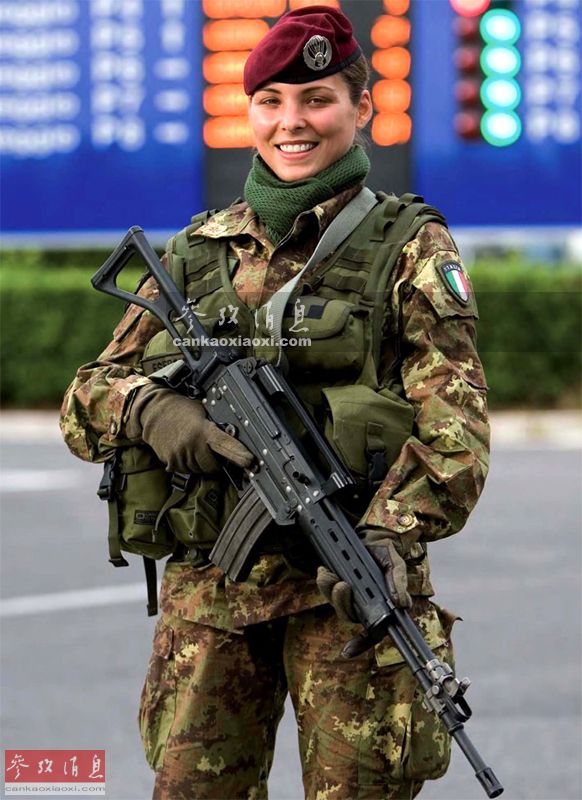 图为2006年都灵奥运会期间,在会场附近执勤的意大利陆军女兵。