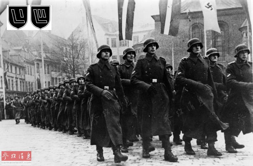纳粹德国从1941年开始占领拉脱维亚,后来党卫军以强迫的方式,从当地招募了4万人,组成了两个掷弹师,分别称为党卫军第15掷弹兵师(拉脱维亚第1志愿旅)和第19师(拉脱维亚第2志愿旅)(左上角小图1和小图2)。图为党卫军第15掷弹兵师在前往东线前,在拉脱维亚首都里加阅兵。这些拉脱维亚人被强行分派给党卫军。党卫军用他们组建了2个装甲掷弹师。这2个师在激战中几乎被彻底歼灭,后来又部分重建。曾任德国联邦国防军军史研究处学术主管多年的穆勒估计,总计约有4万拉脱维亚人为德国战死。换言之,2个装甲掷弹师近乎全军覆没,替即将灭亡的第三帝国做了可怜又可耻的炮灰。