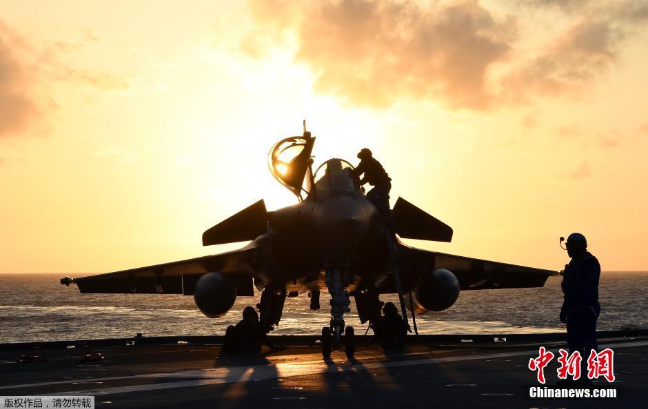 阵风战斗机,是戴高乐号的主力战斗机种,也是法国航空科技最新力作。阵风战机由曾研制幻影系列战机的达索公司制造,也是另一项法国国防产业的骄傲。阵风拥有先进的航电、动力、飞控以及优秀的气动力布局,性能与战力十分拔萃。在设计之初,阵风就被规划为空、海军的通用机种,而阵风M就是阵风系列的舰载衍生型。图为2015年1月13日,舰载机停放“戴高乐”号航母甲板上。