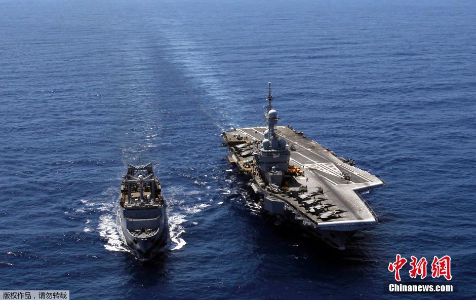 法国对于自己一贯的“武力自主”政策的坚持,从昂贵的戴高乐号就能得到印证。该舰不仅是全世界唯一非美国建造的核动力航空母舰,舰上的装备举凡动力、武器、电子等绝大部分也都是法国自制,故该舰堪称法国雄厚国防工业缴出的一张漂亮成绩单,也是足以作为法国海军象征的门面。图为2011年4月12日,法国“戴高乐”号航母和补给舰在利比亚海岸附近航行。
