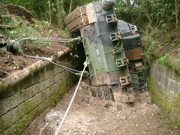由法国研制的勒克莱尔坦克又被称为是“世界最贵”坦克,因其造价高昂而备受关注。图中这两辆法国军队的勒克莱尔坦克不知什么原因,一个栽进了山上的壕沟,一个翻下了山坡。
