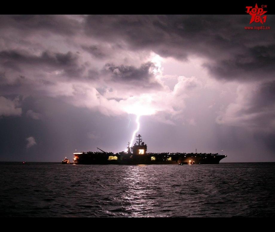 军舰在海上遇到恶劣天气很正常,也经常会碰到闪电的情况,但很少有人抓住时间记录下这惊心动魄的一刻。以下就是一组外军航母在海面上遭遇闪电的罕见瞬间。