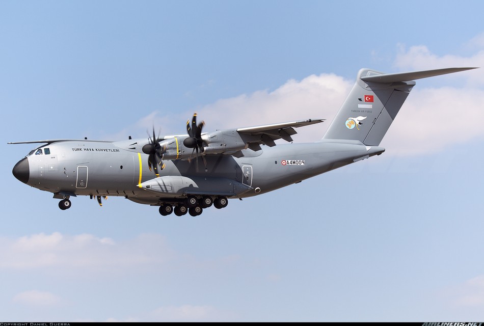 土耳其在2014年4月4日收到第一批10架空中客车A400M军用运输机。正式的交接仪式在西班牙塞维利亚空客总装线进行。这架飞机是第三架交付给客户的生产型A400M军用运输机。它将在土耳其开塞利空军基地负责机组人员培训工作,并将最终替换C- 160在土耳其空军服务。