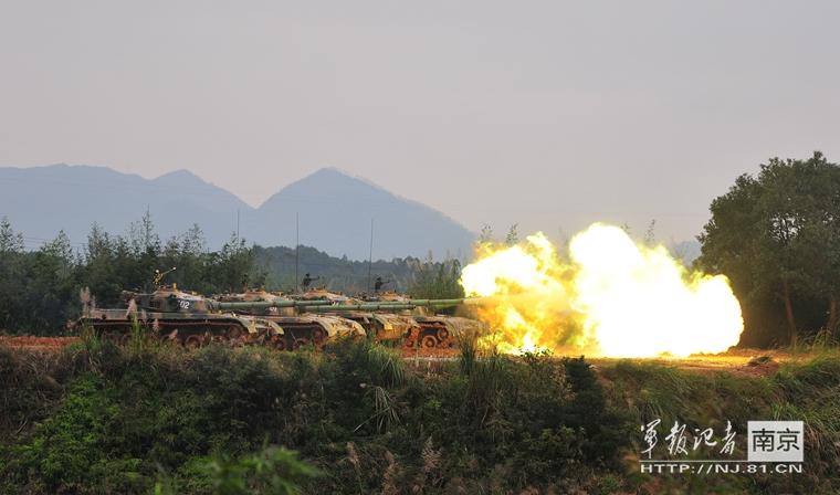 炮口火球!解放军96式坦克群山林间开火