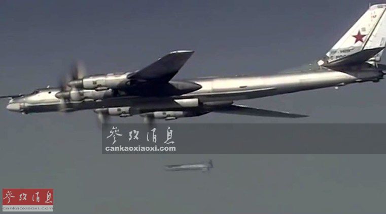 图为2015年11月初,俄军一架图-95MSM轰炸机(图-95MS的最新升级型)挂载8枚Kh-101隐身巡航导弹起飞训练的图片。