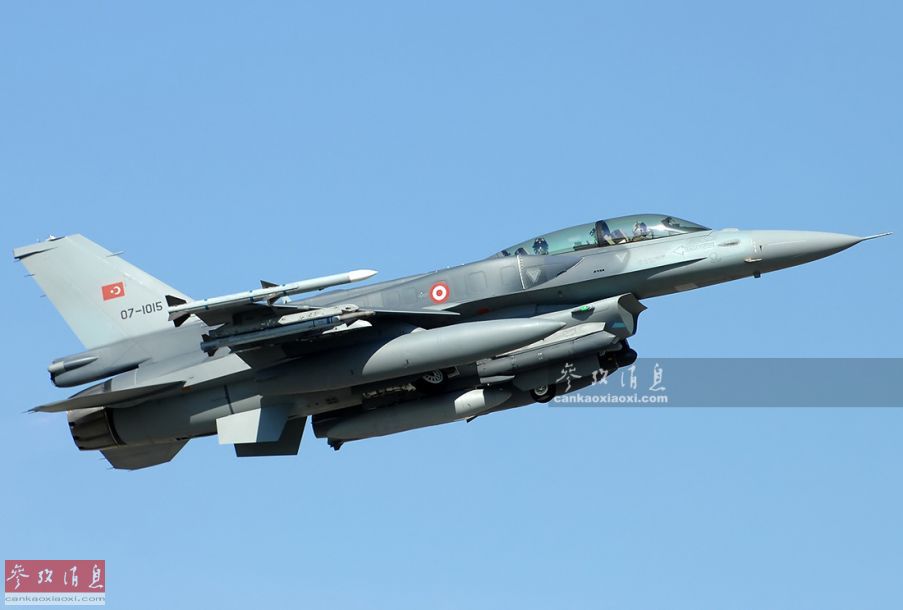 图为土耳其空军装备的F-16D第50 批次双座战斗机,带有保型油箱,该型机是土空军F-16机群中的最新型号。图中这架翼尖挂有AIM-120中距空空导弹,翼下挂有AIM-9X近距格斗导弹,在进气道挂架还搭载了最新的“狙击手”XR瞄准吊舱,挂载方式与美空军现役F-16基本相同。