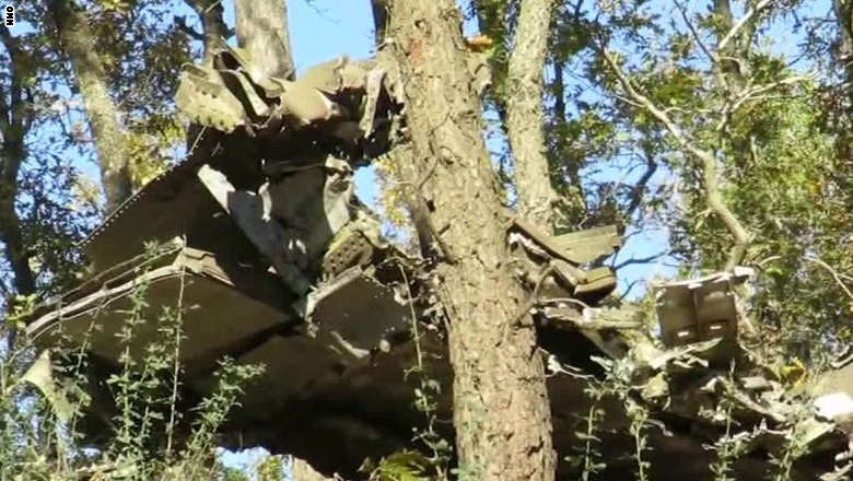 11月24日,俄罗斯空军的一架苏-24战机在土耳其和叙利亚边境地区被土耳其空军击落,随后在叙利亚一侧坠毁。25日,美国有线电视新闻网公布了一段坠毁战机残骸的最新画面。画面显示,这架苏-24战机机身已完全解体。一些大块的残骸落在了树丛里。在周围的地面上,也可以看到四处散落的碎片。这说明战机在坠毁的过程中受到了严重冲击。