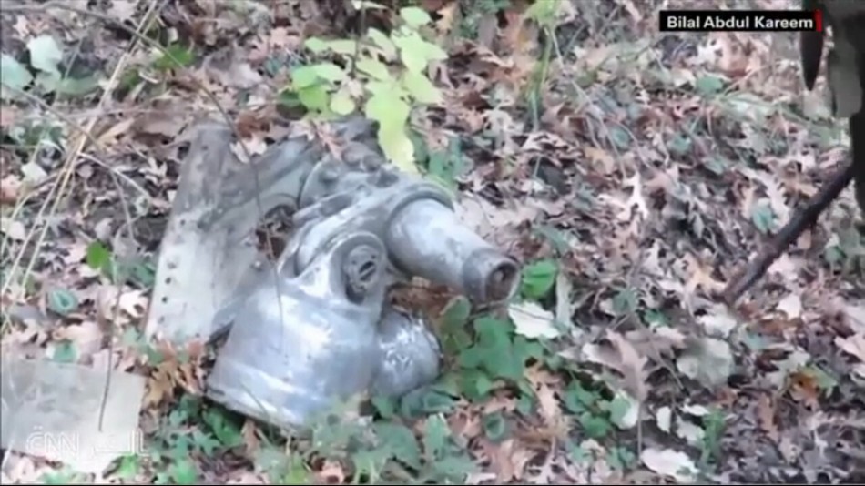 11月24日,俄罗斯空军的一架苏-24战机在土耳其和叙利亚边境地区被土耳其空军击落,随后在叙利亚一侧坠毁。25日,美国有线电视新闻网公布了一段坠毁战机残骸的最新画面。画面显示,这架苏-24战机机身已完全解体。一些大块的残骸落在了树丛里。在周围的地面上,也可以看到四处散落的碎片。这说明战机在坠毁的过程中受到了严重冲击。