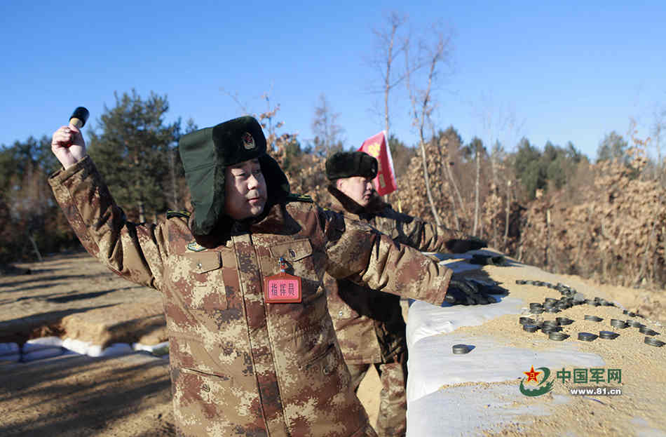 11月25日,训练间隙,该部团长韩江和上级督导组人员一起现场为新兵演示投掷手榴弹的方法。