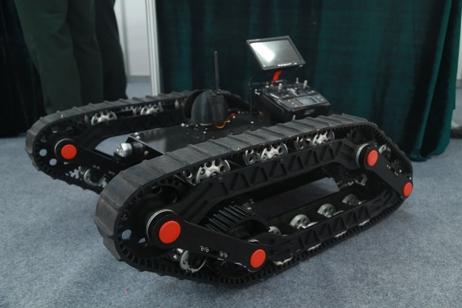 与普通高校开展的机械创新设计大赛不同的是,军事院校参赛作品具有浓郁的实战需求背景,广泛涉及军事侦察、水下探测、反恐排爆、消烟除毒、战地救援等复杂环境下的多样化军事任务。获得一等奖的“突击勇士”模块化作战平台,采用强电直驱、摇臂式四连杆系统等创新设计,具有越障能力强、运动速度快、负载能力强等特点。此外,用于勘察排爆的多功能模块化排爆机器人、抢险救援的复杂地面六轮全着地越野平台和水上救生的低压气动抛绳器等作品也获得一等奖。