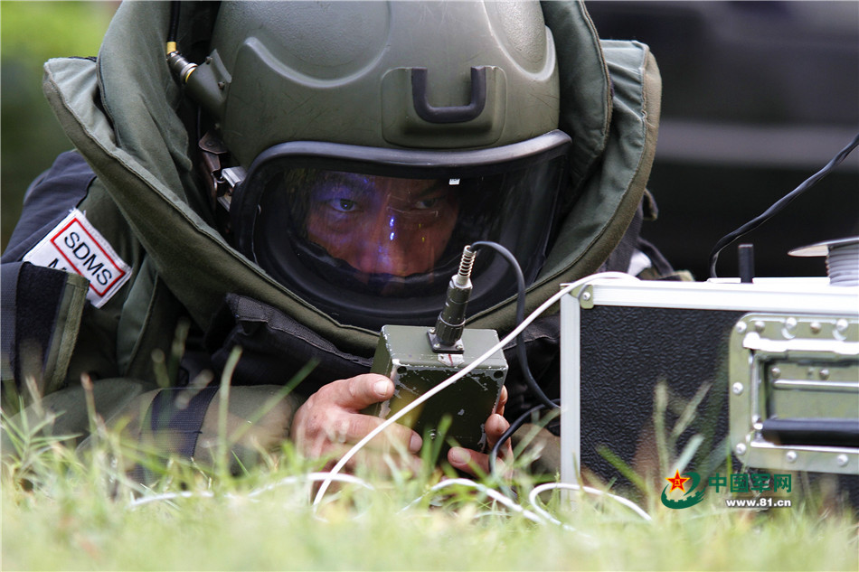 刘瑞波在进行排除爆炸物训练。