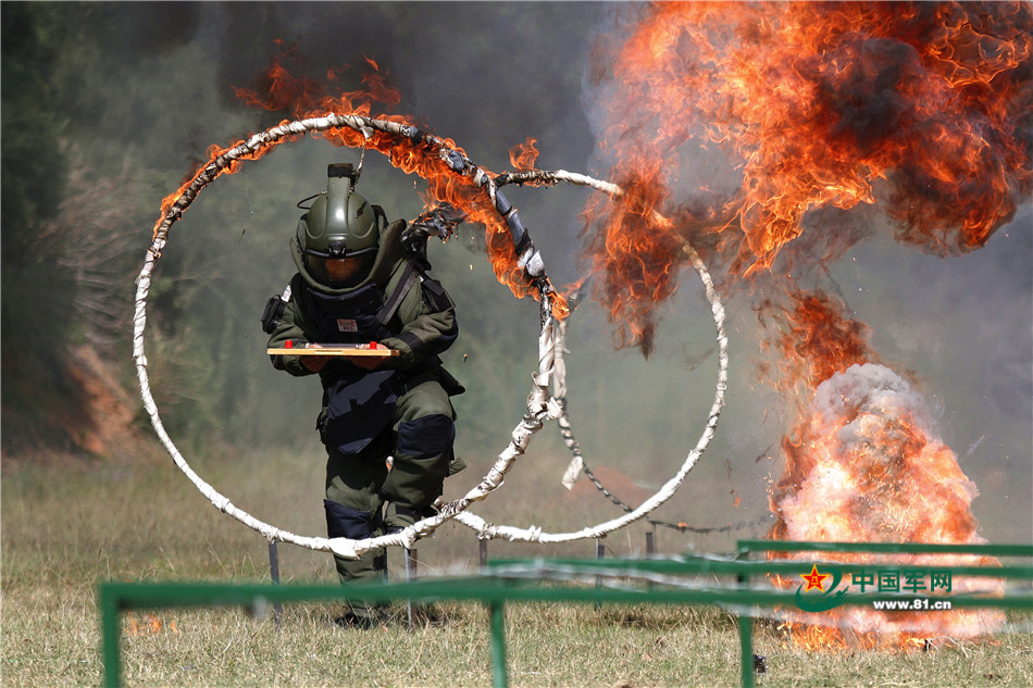 武警排爆手惊险一幕:手持“水银炸弹”钻火圈