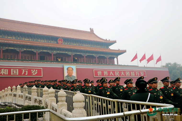 官兵行进。