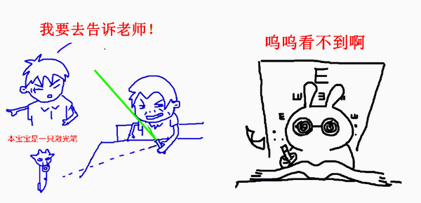 有人说2米是安全距离,但实际上激光的损伤取决于激光的能量、波长、曝光时间、屈光状态、瞳孔大小等等复杂因素。激光笔常见红色,绿色和蓝色激光,其中绿色更容易被黄斑处色素吸收而造成损伤。按照功率分级:功率小于1mW的可见光(波长400-700nm)激光笔为第二类(Class 2或II);功率介于1-5mW的为第三类A(Class 3A或IIIa)。第三类B(Class 3B/IIIb)激光(功率5–500mW)和第四类(Class 4/IV)激光(功率大于500mW)不能以激光笔的名义推广销售。但即便是2类激光,如果近距离直视超过10s也可以造成视网膜的损伤。而市售许多儿童的玩具激光笔是第三类B以上的。所以请家长们忘掉所谓的安全距离,所谓的安全激光笔,因为误伤有时也是难免的,而且运气差点的话,激光会“秒杀”视力。因此尽量不要给孩子买激光笔,告诫孩子远离激光笔,不见最好,遇见了千万也要躲开,一眼也不要多看!
