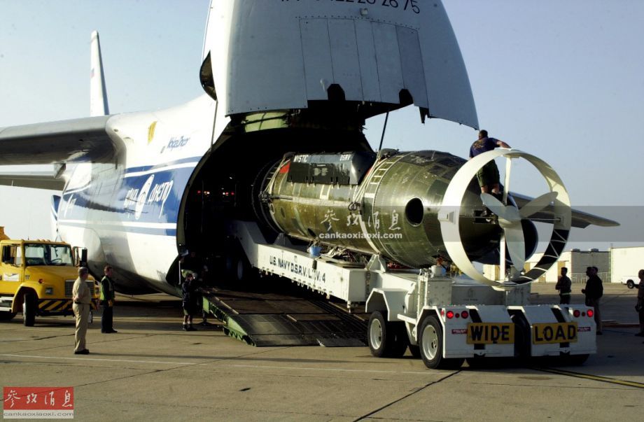 图为美海军租用俄罗斯“伏尔加第聂伯”航空公司的安-124运输机空运DSRV-1小型潜艇。