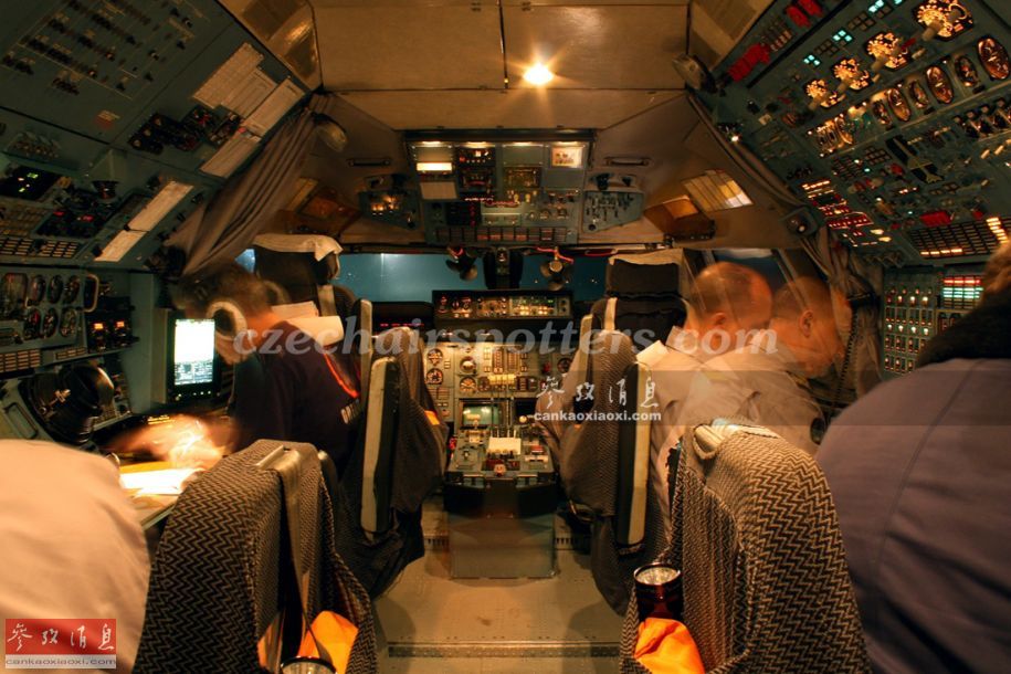 安-124采用6人制机组,外加一名货物装卸员,座舱布置在上层舱室。图为安-124准备起飞前,机组人员各就各位,进行预飞检查。