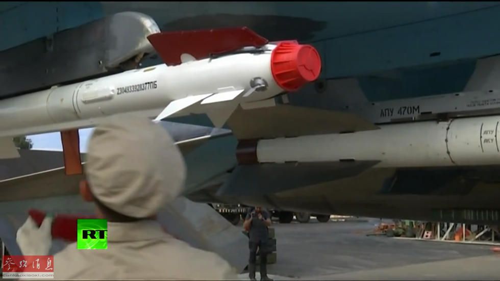 俄派出执行任务的苏-34战斗轰炸机除携带航空炸弹外,还首次携带中近程空对空导弹。图为R-73格斗弹
