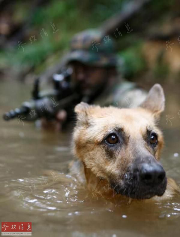 随特战队员一同进行渗透训练的工作犬。