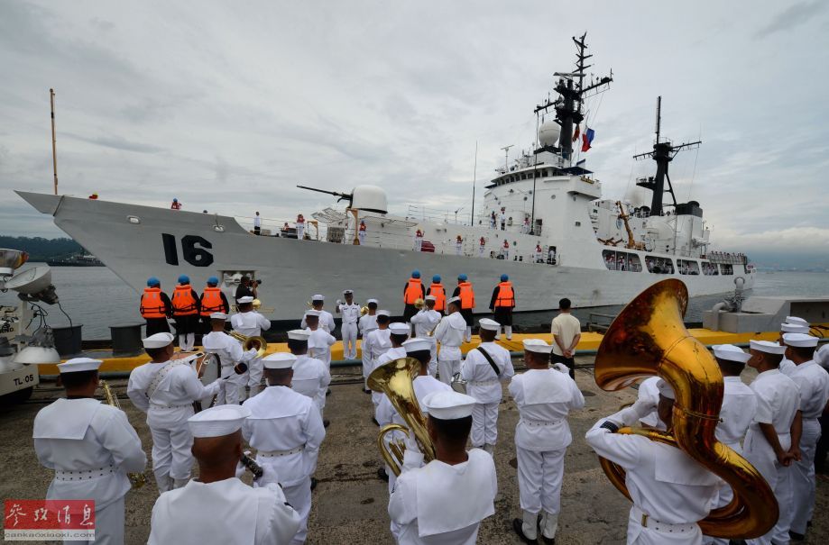 8月6日,在菲律宾首都马尼拉西北部的苏比克湾,一队海军乐团正在迎接美国“汉密尔顿级”巡逻舰“艾卡拉兹”号的到来。在欢迎这艘最新战舰的到来之际,菲律宾誓言要加强海上巡逻。