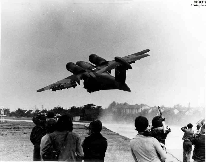 5、图为演示短距起飞的YC-14,总体上而言,YC-15的外部吹气襟翼更接近传统襟翼,付出的重量代价也较小。但AMST项目最后因开发费用过高和飞机性能并不明显好于C-130而取消。