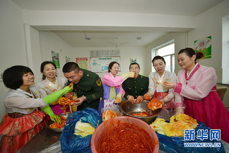 朝鲜族“兵妈妈”为退伍老兵做泡菜