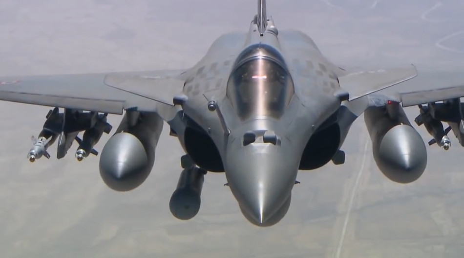 法国军队阵风战机打击IS极端武装的主要武器有两种,一种是125千克的AASM空地模块化导弹,GPS 惯导,火箭发动机推进,高空投放射程55公里。另一种是227千克的GBU-12铺路II激光制导炸弹,无动力。阵风一次出动通常挂6枚AASM或4枚GBU-12。