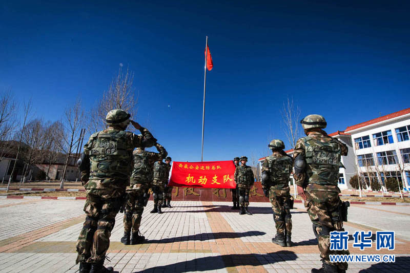 12月2日,西藏边防总队机动支队举行退伍老兵向留队战士交接队旗钢枪和臂章的仪式。