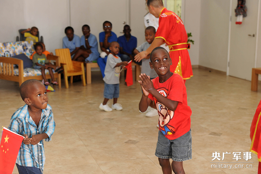 巴巴多斯儿童的拥抱:感谢中国海军官兵