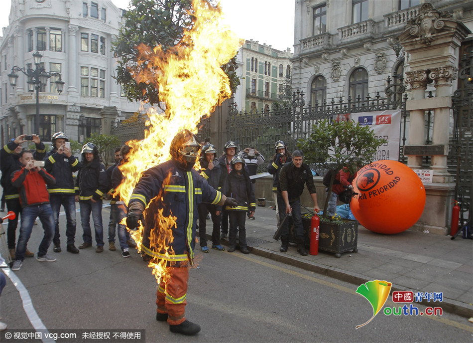 西班牙消防员“自焚”抗议!要求加强防护措施