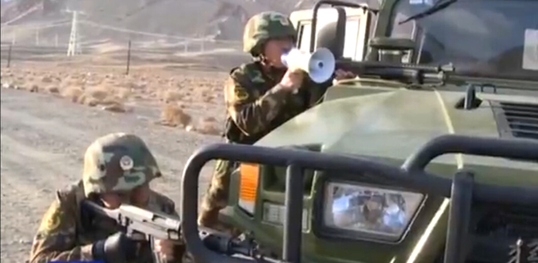 “两名暴恐分子,携带枪支弹药,挟持一辆墨绿色越野车。上级命令我们设卡堵截,解救人质。”到达任务区,指挥员立即作出部署,官兵在交通要道设置路卡,对来访车辆进行盘查。