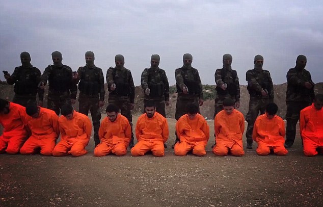 士兵们举起枪,准备“枪毙”IS战俘(网页截图)