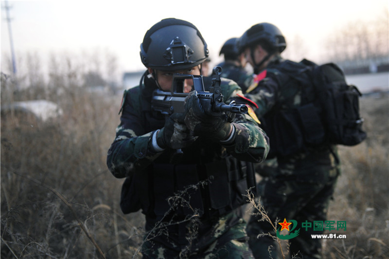 第38集团军某特种作战旅大力加强实战背景下的单兵、小组反恐训练,不断提高复杂环境下伏击、隐蔽接敌等作战能力。图为12月5日,特战队员进行实战化训练的情景。