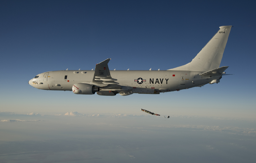 资料图:美海军P-8反潜侦察机。