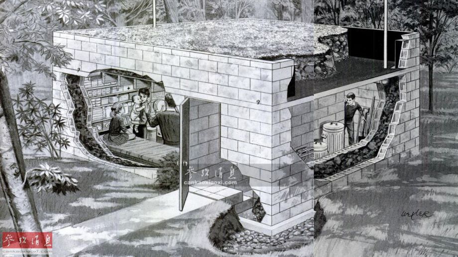 一种既可从房屋中进入,又连通着瞭望台的地下掩体。