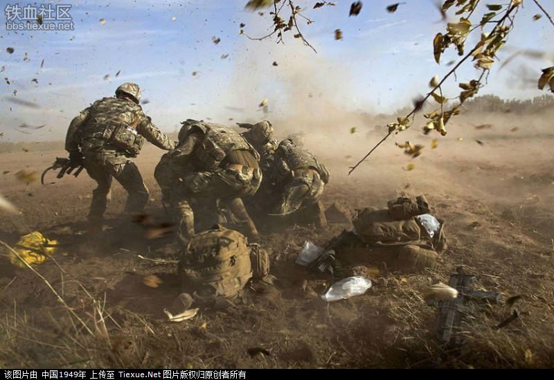 2011年11月11日,阿富汗赫尔曼德省,威尔士亲王皇家团的士兵正在营救斯蒂芬·班布里奇。班布里奇25岁,是苏格兰高地警卫团的一名二等兵。他被临时爆炸装置炸伤,失去了双腿。