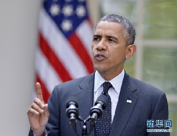 资料图:2014年5月27日,美国总统奥巴马在华盛顿白宫就从阿富汗撤军问题发表讲话。美国总统奥巴马27日宣布,有意在今年底北约作战部队撤离后在阿富汗部署大约9800名美军。 新华社记者殷博古摄