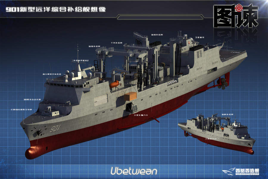 当前,中国正在加速建造各种水面主力作战舰艇,包括052C/D宙斯盾驱逐舰、054A导弹护卫舰,也包括流传已久的055万吨级隐身驱逐舰和国产大型航母,这些大型水面战舰未来在执行海上作战任务时,制约战斗力发挥的最大因素可能就是后勤问题,没有超大型综合补给舰的随行,中国远洋舰队的持续作战能力将大打折扣。