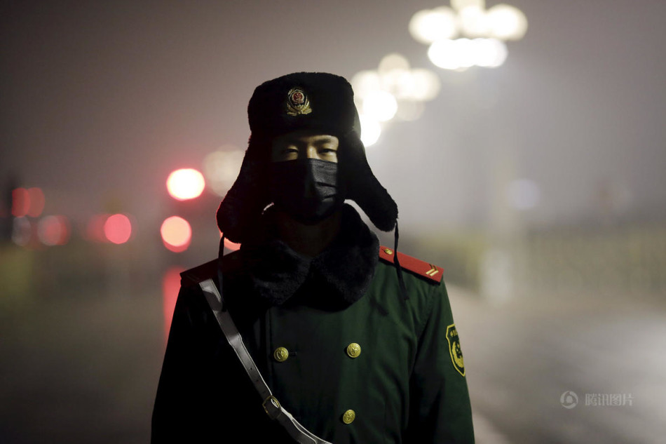 北京雾霾红色预警 天安门武警首次戴口罩执勤