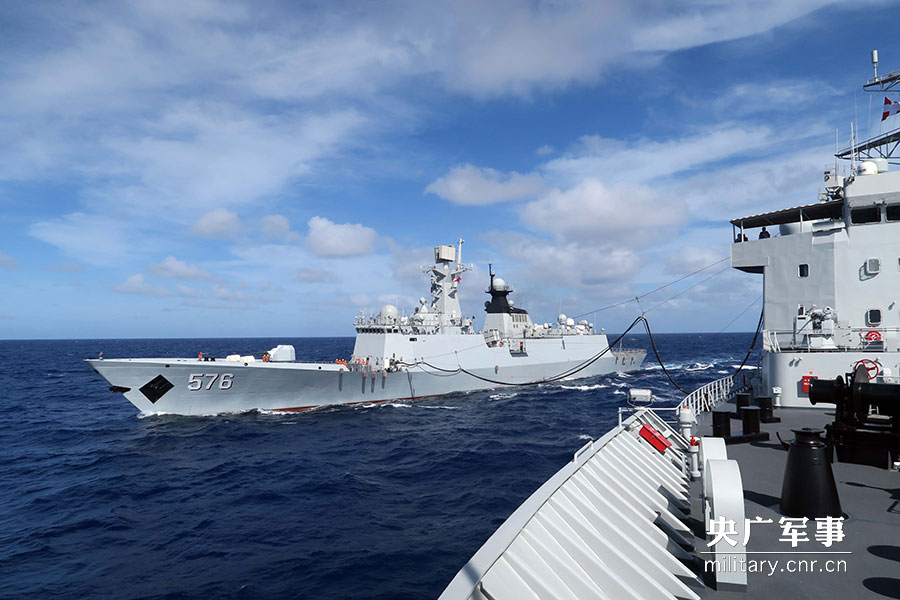 两舰保持同向同速航行补给。赵区医摄