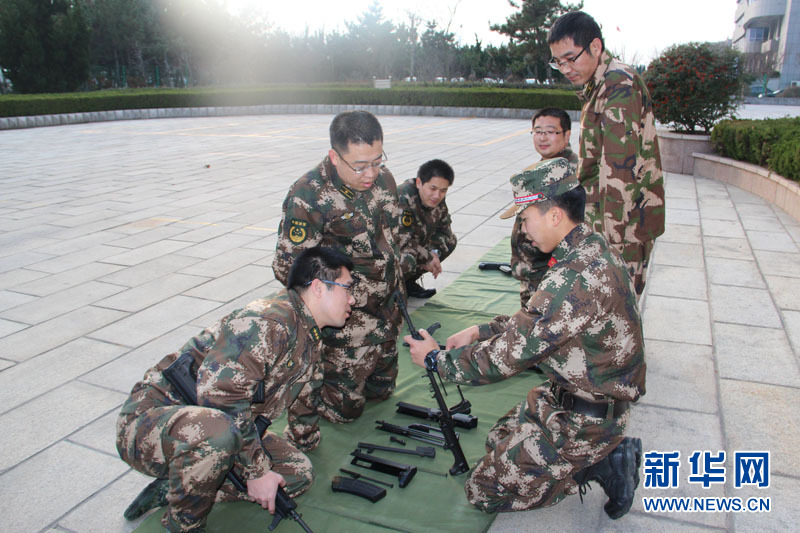官兵练习枪支分解组合