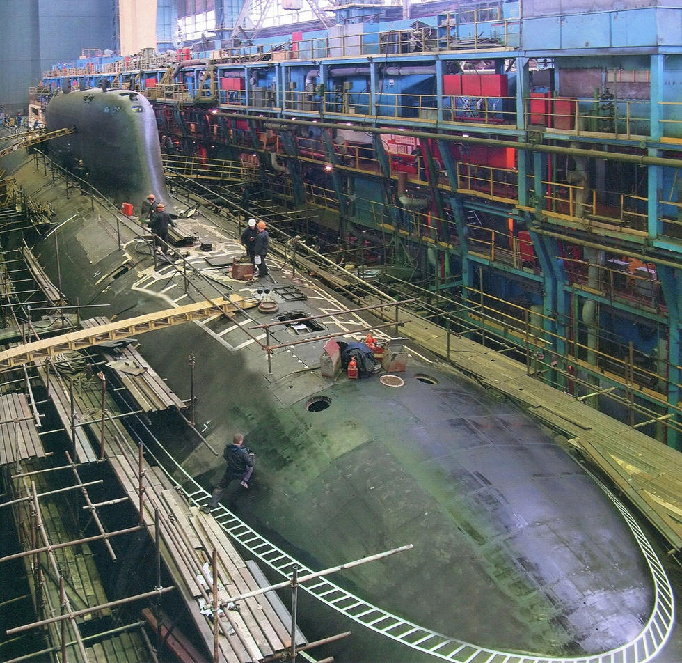 “德米特里·顿斯科伊”号战略核潜艇,作为地球上唯一的941型台风级战略核潜艇,原配20枚SS-N-20潜地导弹。该艇早已不携载导弹武器,也不再战略巡逻,仅作为圆锤(布拉瓦)洲际导弹的试射平台。台风级核潜艇退役后将由“北风”级战略核潜艇替代。近些年俄海基战略核力量基础是六艘德尔塔IV级。图为俄军新一代亚森级攻击型核潜艇,技术水平已经远远超过台风级。