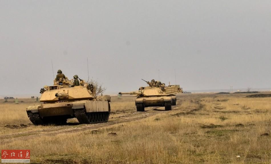 美军M1A1主战坦克编队推进。