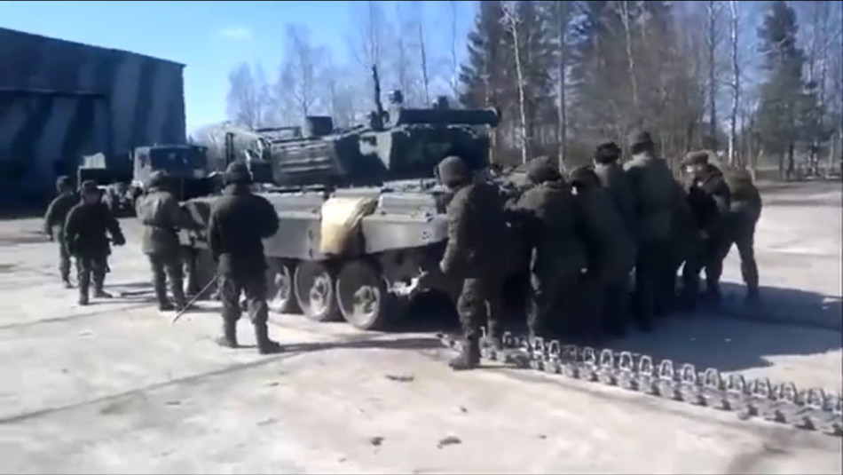 这段俄罗斯坦克兵为疑T-72B3主战坦克更换履带的视频堪称标准的“一分钟物理小课堂”。十来个坦克兵拼尽全力推动坦克,40吨的铁疙瘩徐徐前进;坦克脱离旧履带后,一众坦克兵立即转为“拔河模式”,又费了九牛二虎之力才让坦克停稳。