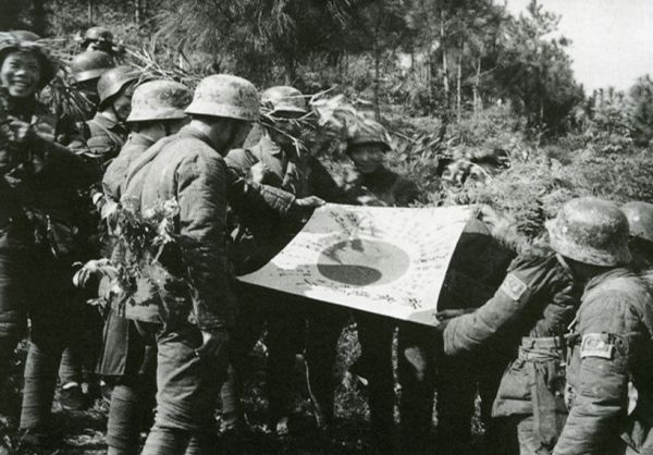昆仑关之战掳获的日军军旗,该战中国军队伤亡一万四千人,日军伤亡一万七千人。