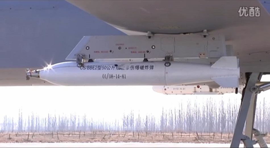 中国航天科工集团近日公开国产彩虹-4无人机加挂两型50公斤小直径炸弹攻击视频。画面中,彩虹4机翼下分别挂了50公斤航空爆破弹与卫星制导炸弹升空,对地面设置的靶标进行比较准确的打击。
