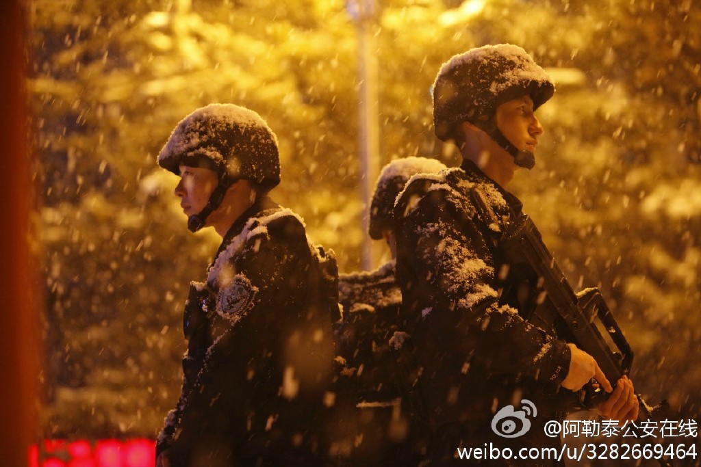 天山千秋雪,东海万里浪。我们是新疆公安,无论巡逻在风雪边疆,还是坚守在反恐战场,祖国安宁、人民和祥就是我们最大的愿望。万家团圆,面向太阳升起的地方,向祖国敬礼,祝人民安康!我们把忠诚铭刻在祖国边疆大地,我们把信念镶嵌在西域高山之上!共和国的旗帜召唤着我们挺起胸膛!祖国万岁!
