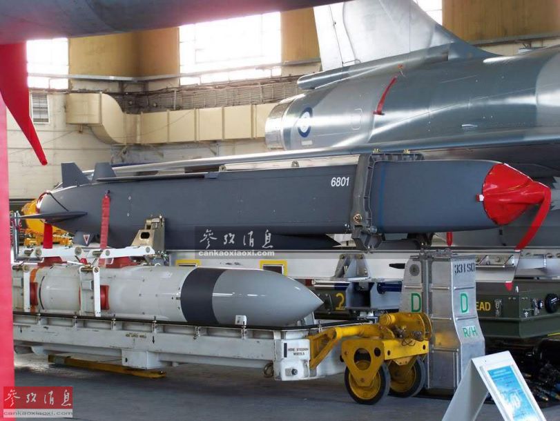 图为希腊空军的幻影2000战机机库,图中可见“斯卡普”巡航导弹和“飞鱼”反舰导弹(近处)的尺寸对比。