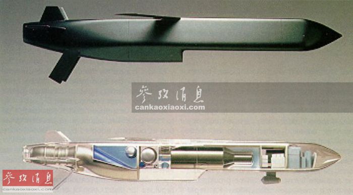“斯卡普”EG巡航导弹实际是法国方面对该型导弹的绰号,英国称其为“风暴阴影”,是由欧洲MBDA公司(英、法、意三国)于20世纪90年代研发的远程防区外攻击导弹。其采用涡喷发动机推进,最大飞行速度0.8马赫,标准型射程大于250千米,增程型超过400千米,可携带450千克重的钻地高爆弹头。图为斯卡普EG导弹的剖面图